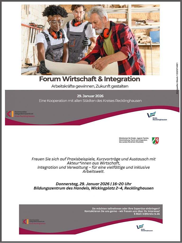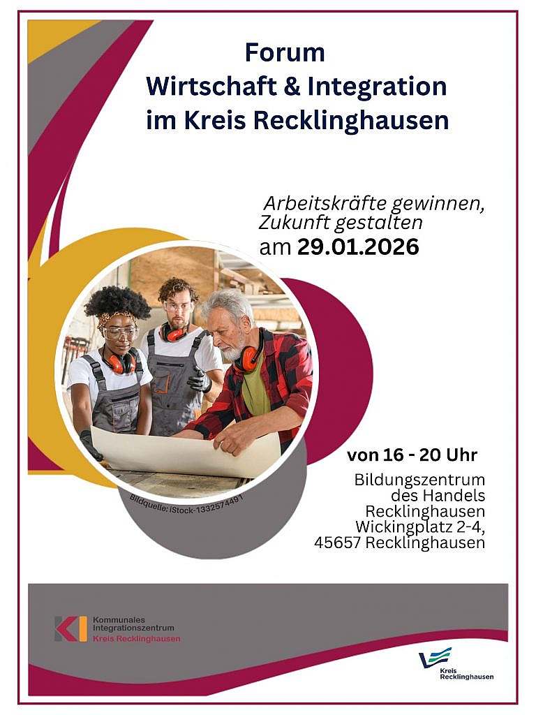 Unter der Leitung des Kommunalen Integrationszentrums planen Akteure aus dem Kreis Recklinghausen ein Fachforum für Arbeitgeber:innen, die sich für die Fachkräftegewinnung aus dem Ausland, aber auch für die Gewinnung von ausländischen Fachkräften, die sich bereits im Bundesgebiet aufhalten, interessieren.