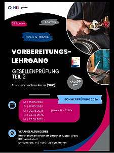 Im Mai 2026 findet ein Vorbereitungslehrgang auf die Gesellenprüfung Teil 2 im SHK-Handwerk statt.